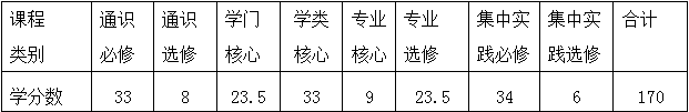 五、课程设置及学分分布