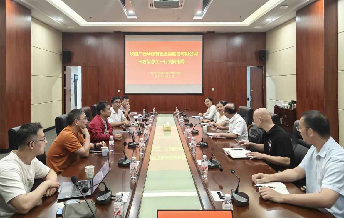 10月21日下午,广西华锡有色金属股份有限公司(以下简称“华锡有色”)到太阳集团2138进行调研交流,旨在深化双方在有色金属领域的产学研合作,共谋未来发展新篇章。华锡有色总工程师韦方景、高级工程师农永萍,学院院长邹炳锁、副院长陈庆发及相关教师代表参加交流。