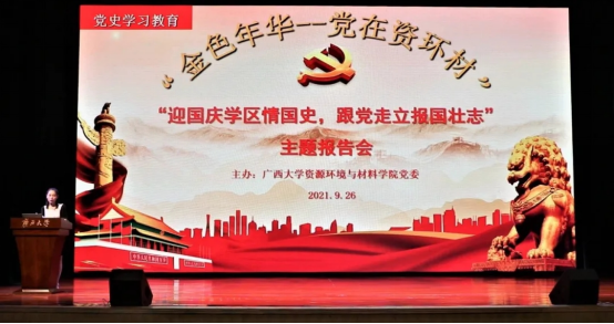 “金色年华·党在资环材——迎国庆学区情国史,跟党走立报国壮志”主题报告会现场