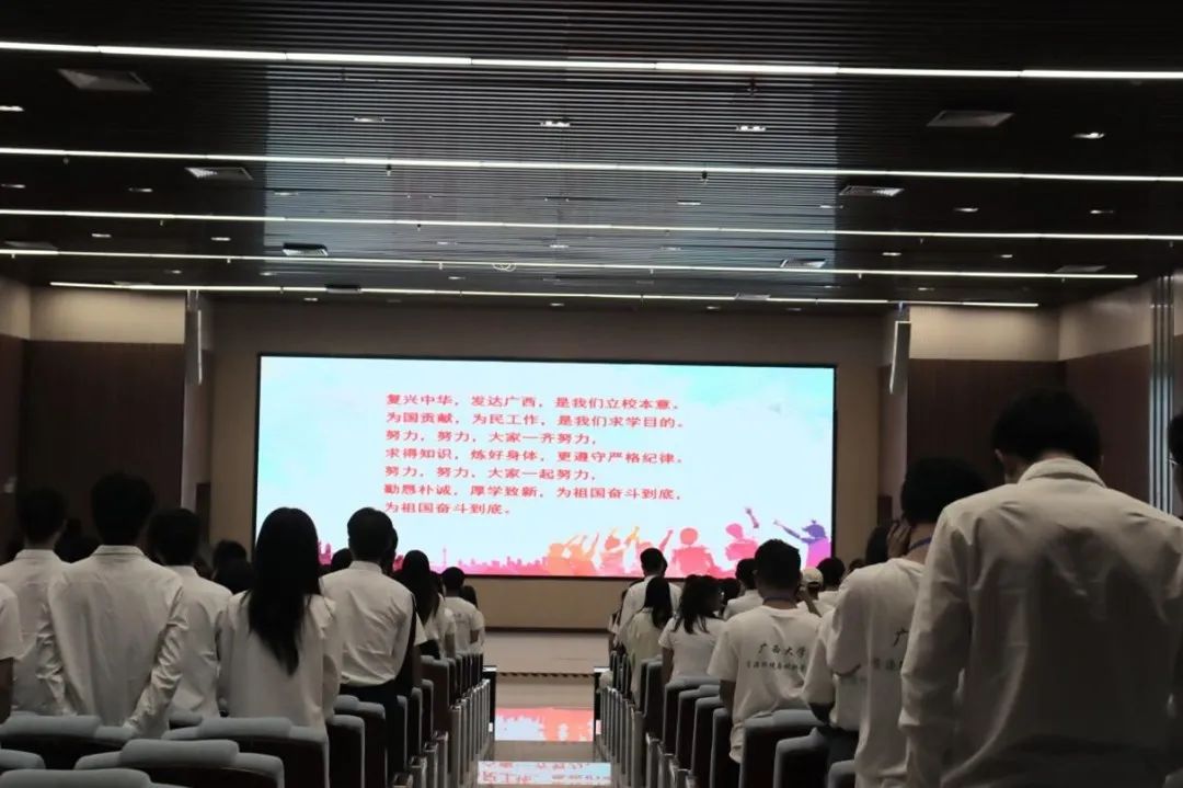 最后,学生会主席团成员覃彬烘带领全体团学组织成员宣誓,在全体成员合唱校歌后,太阳集团2138团学组织新一届全体成员大会圆满结束。