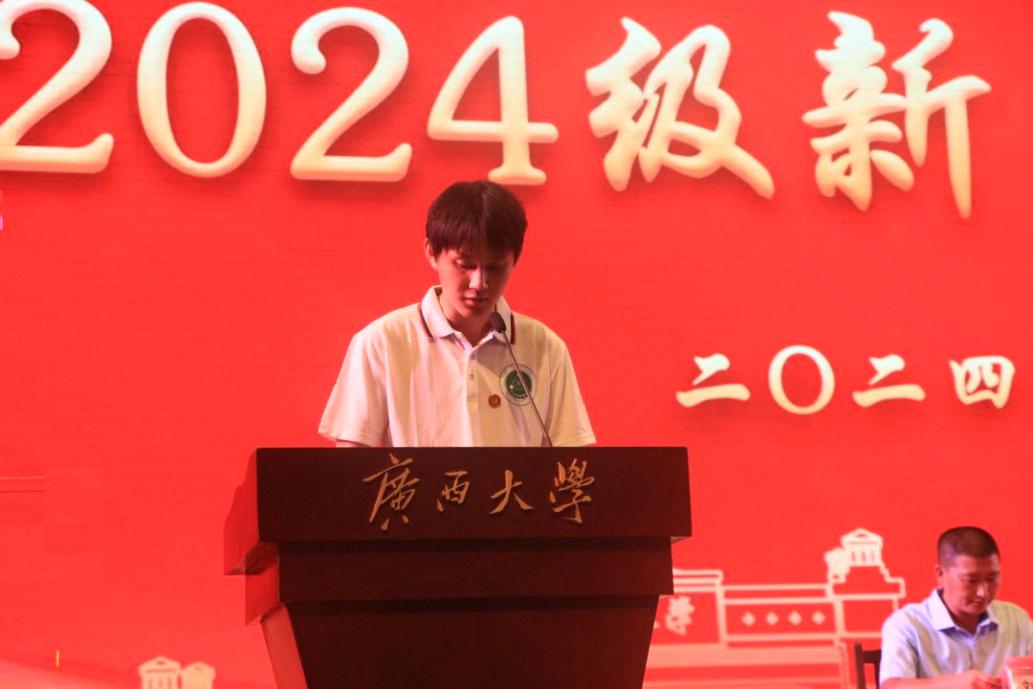 2024级新生、环境工程专业硕士研究生梁帅超在发言中表达了新生学子的决心:深耕专业知识,追求卓越品质;加强跨界融合,拓宽科研视野;参与实践创新,服务国家社会。老生代表、材料科学与工程专业本科生薛冰欣在发言中分享了自己在校生活与学习的感悟:敢于扬起理想的风帆,善于利用现有的资源,勇于塑造完美的自己。