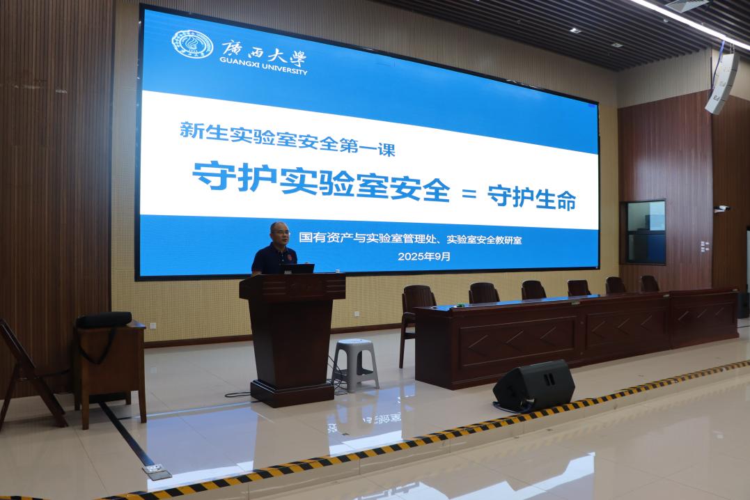 为切实增强 2025 级新生实验室安全防范意识,夯实科研实践起步阶段的安全基础,帮助新生快速掌握实验室安全规范,9月19 日上午,有着丰富实验室安全管理经验的校国有资产与实验室管理处副处长陆翔到太阳集团2138进行新生实验室安全第一课:“守护实验室安全 = 守护生命”的专题讲座,学院全体本科新生参与,共同开启实验室安全知识学习的重要一课。