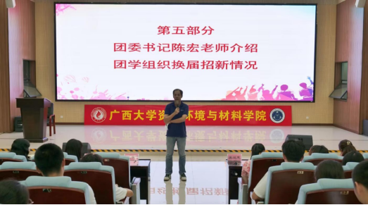 学院团委书记陈宏老师介绍太阳集团2138团学组织换届招新情况,希望各位“萌新”们在新的工作部门和岗位上能够牢固树立服务师生的意识,把握机遇施展才华,为学院团学组织的建设贡献青春力量。