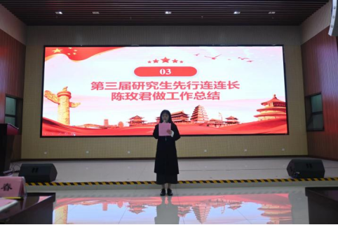 第三届研究生先行连连长陈玫君作工作总结