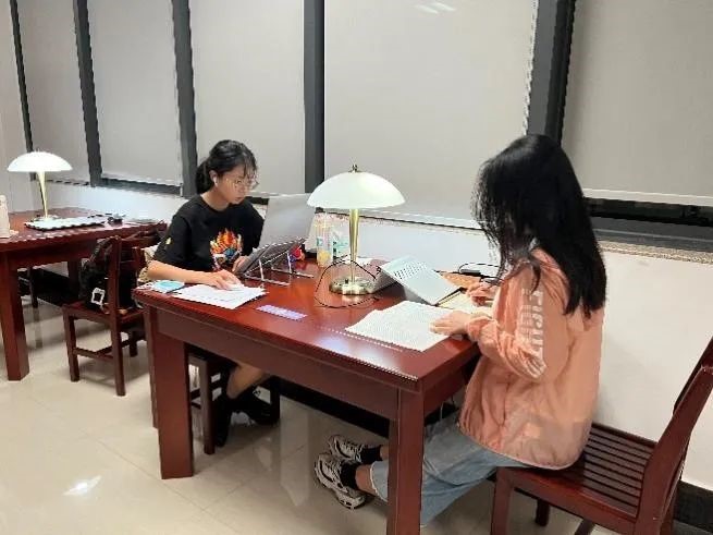 刘欣怡、范文琦一起学习的照片